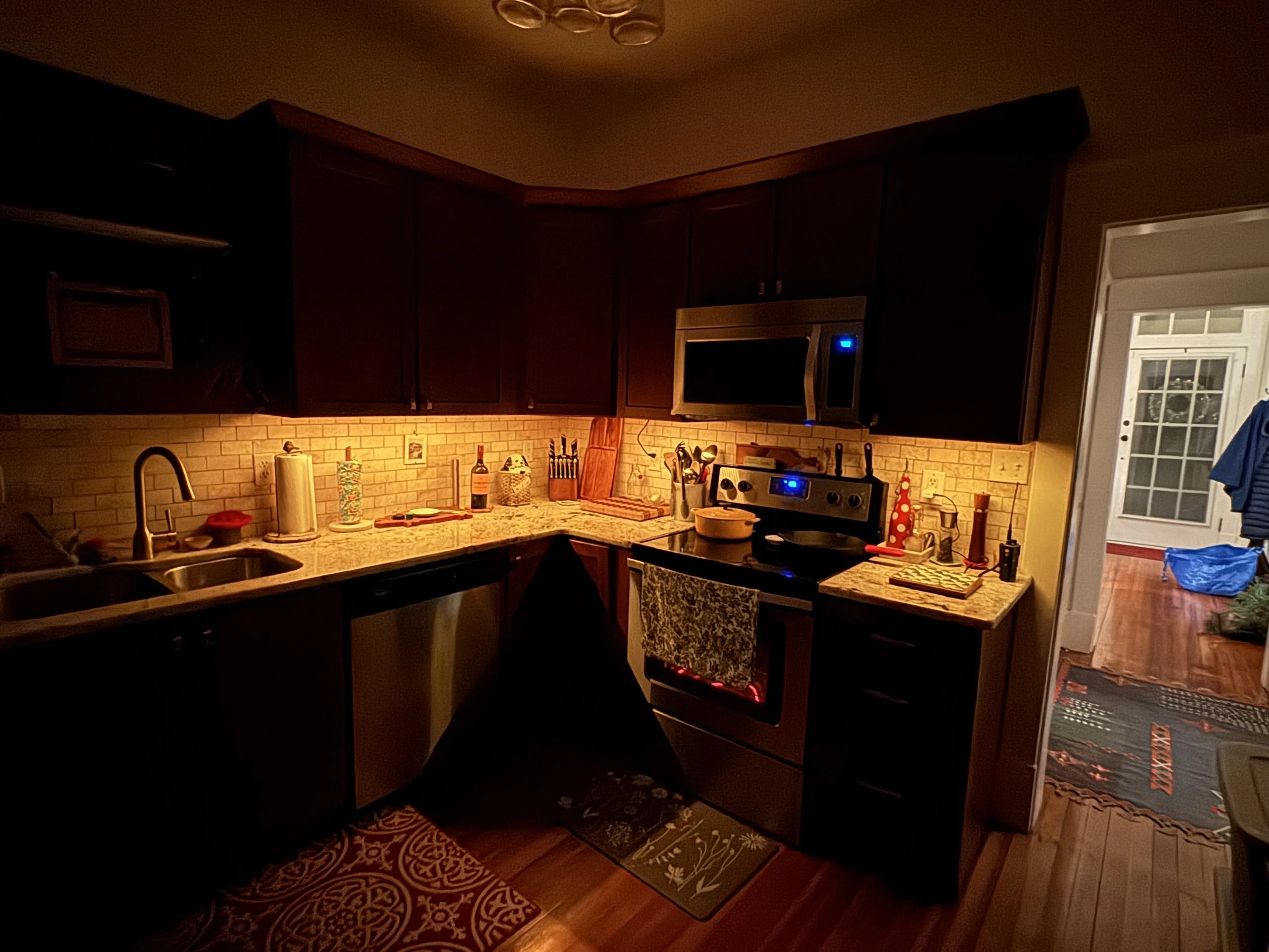 Cabinetry lighting addition and smart integration. Linear Lighting from American Lighting featuring warm-dim technology with color temperatures rating from 1800-3000k.